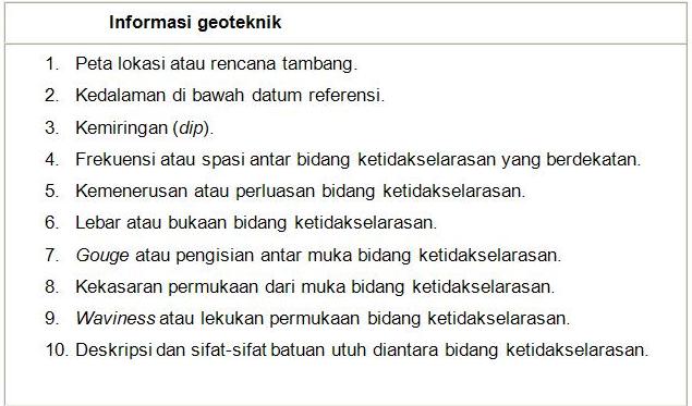 | Tabel 2. Informasi geologi yang diperlukan untuk merekam cacat struktur dalam batuan (Peters, 1978) |